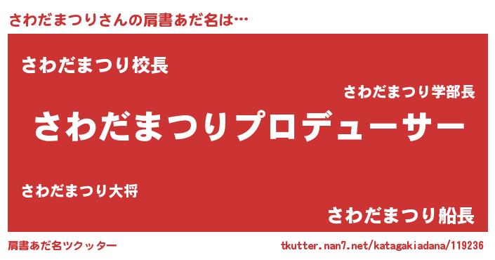 | 男性向けラノベタイトル風あだ名 | 『さわだまつりに滅ぼされるだけの簡単なお仕事です』 |