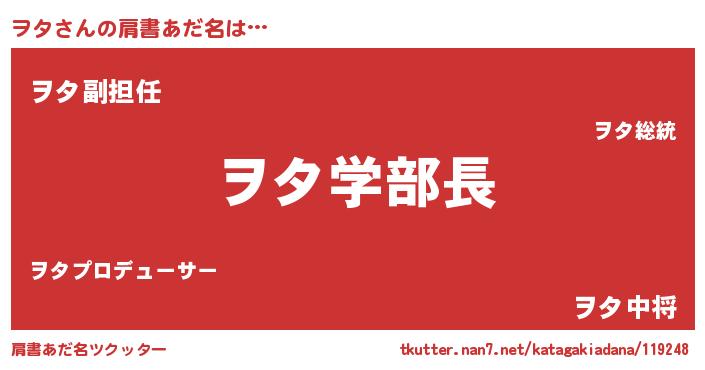 | ヘコむあだ名 | 『ヲタ(遠い目)』『ヲタぷりん』 |