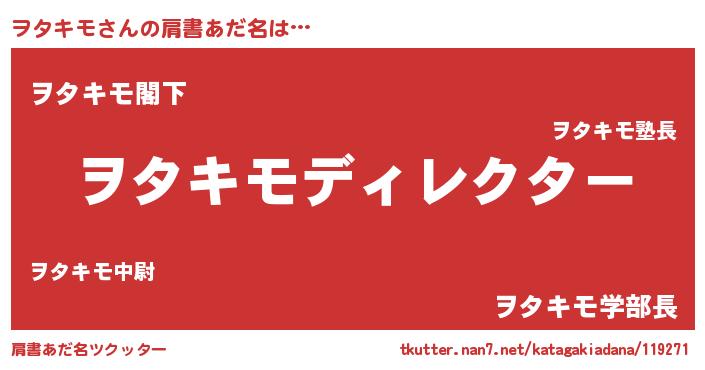 | 男性向けラノベタイトル風あだ名 | 『ヲタキモに滅ぼされるだけの簡単なお仕事です』 |