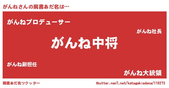 | 男性向けラノベタイトル風あだ名 | 『がんね~年齢イコール彼女いない歴の魔法使い~』 |