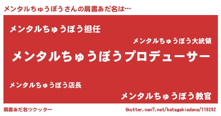 | 男性向けラノベタイトル風あだ名 | 『メンタルちゅうぼうに滅ぼされるだけの簡単なお仕事です』 |