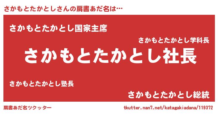 | 男性向けラノベタイトル風あだ名 | 『サカモトタカトシアートオンライン』 |