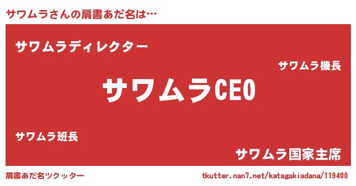 | ファンタジー風あだ名 | 『サワフェル』『エターナルサワムラー』 |