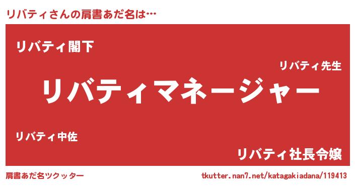 | 男性向けラノベタイトル風あだ名 | 『はたらくリバティさま!』 |