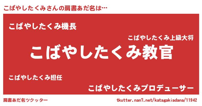 | ヘコむあだ名 | 『こばやしたくみ(笑)』『こばっぺ』 |