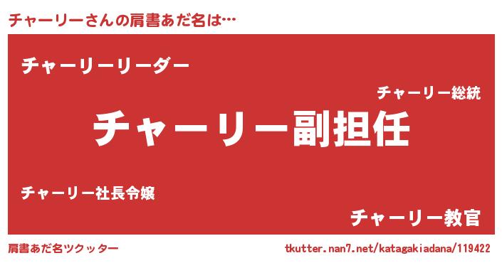 | ヘコむあだ名 | 『チャーリー(震え声)』『チャぷりん』 |