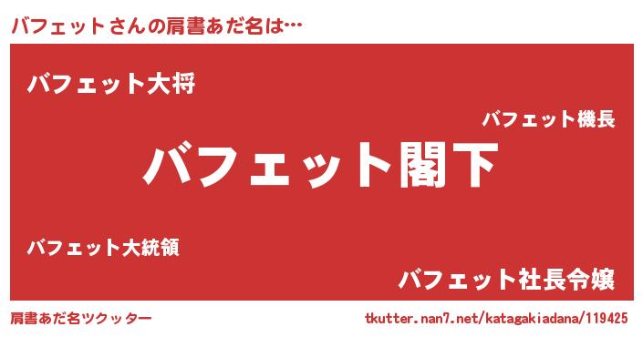 | ヒーロー風カッコイイあだ名 | 『究極戦士バフェット』『仮面バフダー』 |