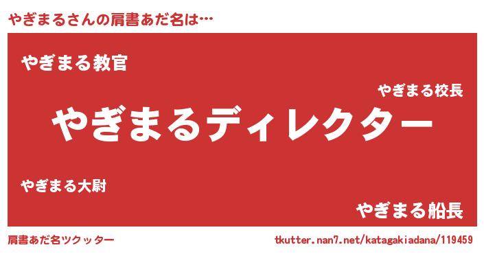 | ヒーロー風カッコイイあだ名 | 『仮面ヤギダー』『ネオヤギマル』 |