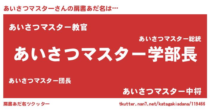 | ヒーロー風カッコイイあだ名 | 『慈愛の使者あいさつマスター』 |