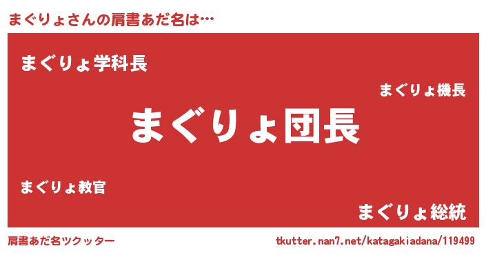 | 男性向けラノベタイトル風あだ名 | 『まぐりょの嫁は女の子じゃないと思った?』 |