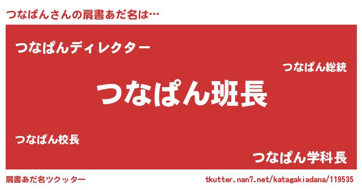 | 男性向けラノベタイトル風あだ名 | 『つなぱんの嫁は女の子じゃないと思った?』 |