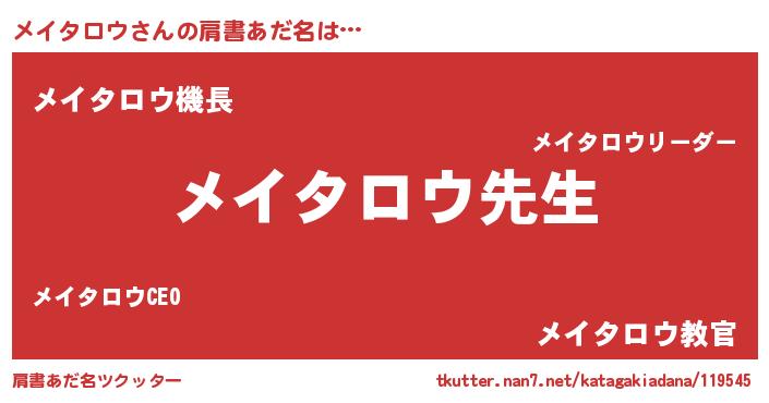| 男性向けラノベタイトル風あだ名 | 『メイタロウという概念が存在しない退屈な世界 』 |