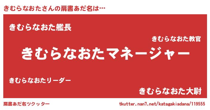 | 男性向けラノベタイトル風あだ名 | 『きむらなおたに滅ぼされるだけの簡単なお仕事です』 |