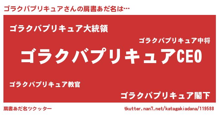 | 胡散臭い通販商品みたいなあだ名 | 『億万長者になれる水晶球…その名も「ゴラクバプリキュア」』 |