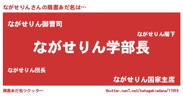 | 男性向けラノベタイトル風あだ名 | 『おまえをオタクにしてやるから、俺をながせりんにしてくれ! 』 |