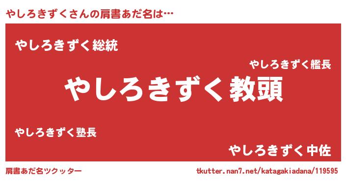 | 意味不明あだ名 | 『永久保存やしろきずく』 |