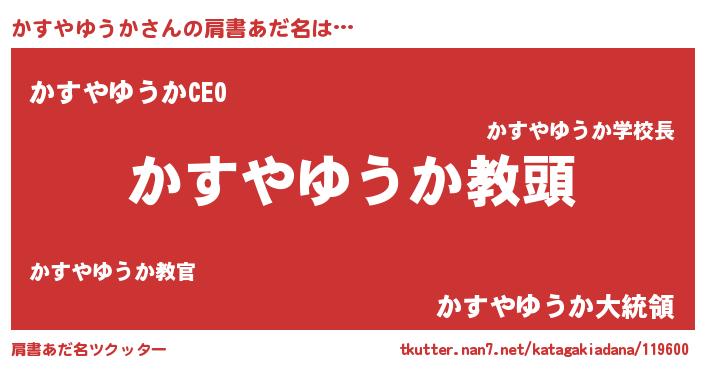 | 男性向けラノベタイトル風あだ名 | 『かすやゆうかという概念が存在しない退屈な世界 』 |
