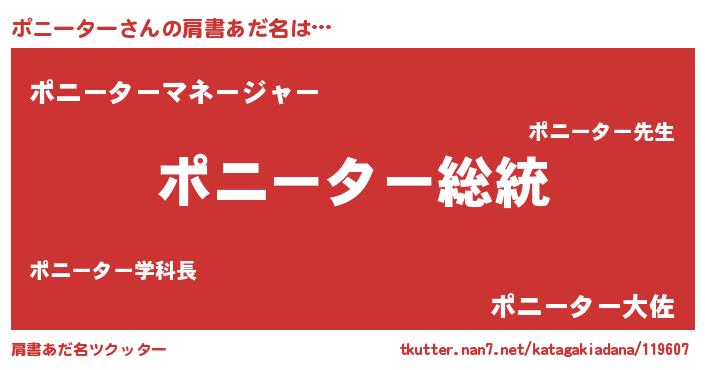 | ヘコむあだ名 | 『ポニーター(苦笑)』『ポニお』 |