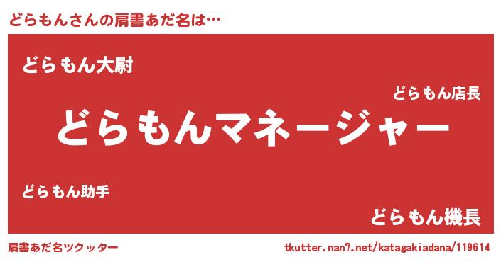 | 男性向けラノベタイトル風あだ名 | 『どらもんに滅ぼされるだけの簡単なお仕事です』 |