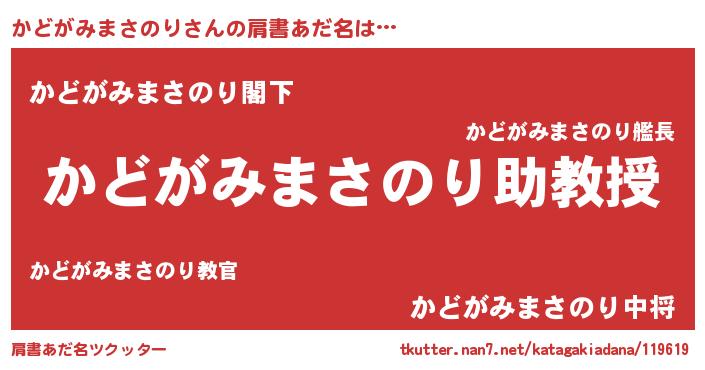 | ヘコむあだ名 | 『かどを』『かどがみまさのり(笑)』 |