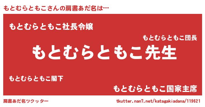 | 意味不明あだ名 | 『永久保存もとむらともこ』 |