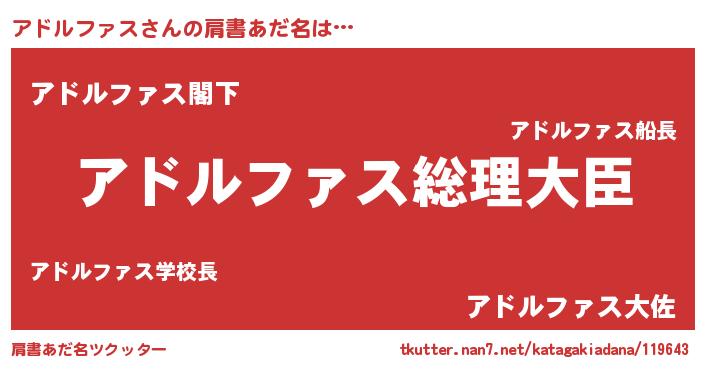 | 欧米人風あだ名 | 『アドルファスクリステル』 |