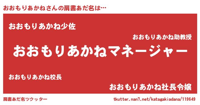 | 男性向けラノベタイトル風あだ名 | 『おおもりあかねに滅ぼされるだけの簡単なお仕事です』 |