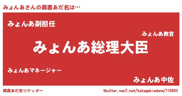 | ヒーロー風カッコイイあだ名 | 『ウルトラみょんあマン』『ネオミョンア』 |