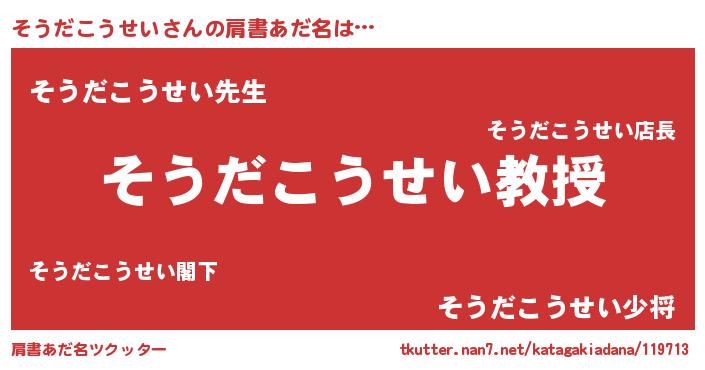 | ヘコむあだ名 | 『そうだこうせい(小並感)』『そうにー』 |