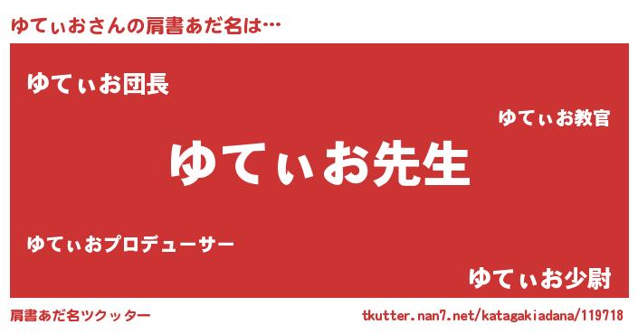 | ヘコむあだ名 | 『ゆてぃお(小並感)』『ゆてを』 |