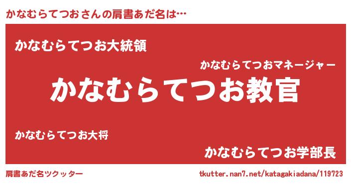 | 意味不明あだ名 | 『住所不定無職かなむらてつお(68歳)』 |