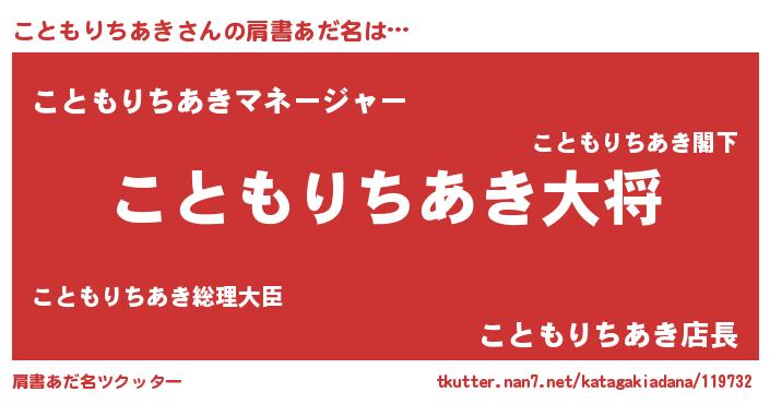 | 伝説のあだ名 | 『不死鳥のスナイパーこともりちあき』 |