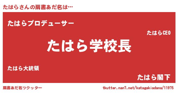 | ヒーロー風カッコイイあだ名 | 『愛の使者たはら』『ウルトラ戦士タハラ』 |