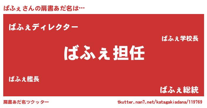 | ヘコむあだ名 | 『ばふぇ(苦笑)』『ばふにゅー』 |