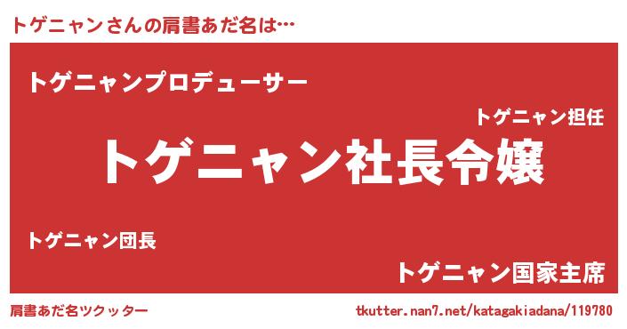 | 男性向けラノベタイトル風あだ名 | 『トゲニャンの憂鬱』 |