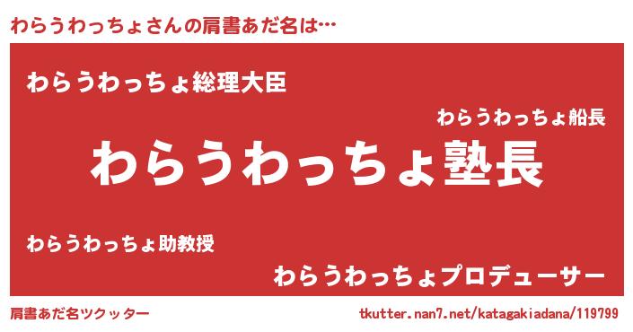 | 男性向けラノベタイトル風あだ名 | 『わらうわっちょの嫁は女の子じゃないと思った?』 |