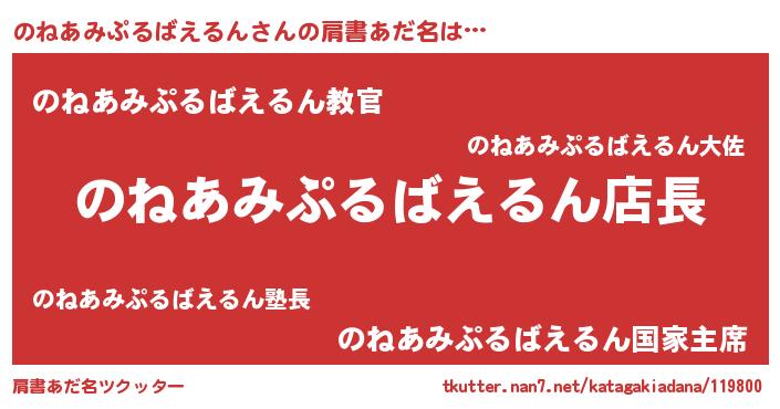 | 男性向けラノベタイトル風あだ名 | 『のねあみぷるばえるんの憂鬱』 |