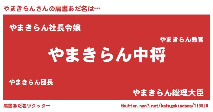 | 男性向けラノベタイトル風あだ名 | 『転生したらやまきらんだった件』 |