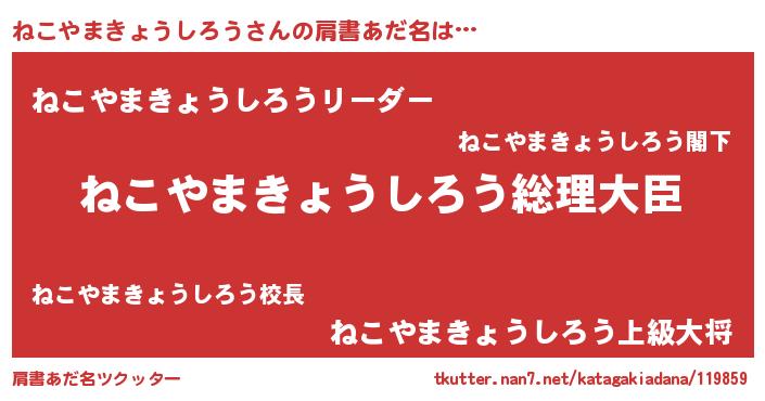 | ポケモン風あだ名 | 『ネコヤダネ』『ヒネコヤマキョウシロウ』 |