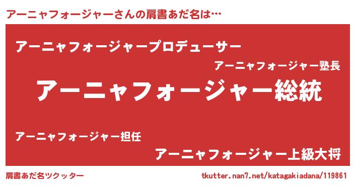 | ヒーロー風カッコイイあだ名 | 『最強戦士アーニャフォージャー』 |