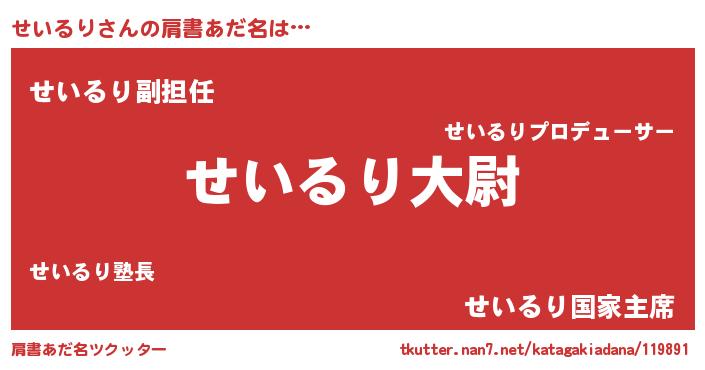| 意味不明あだ名 | 『ヨモギ科せいるり属』『自称せいるり』 |