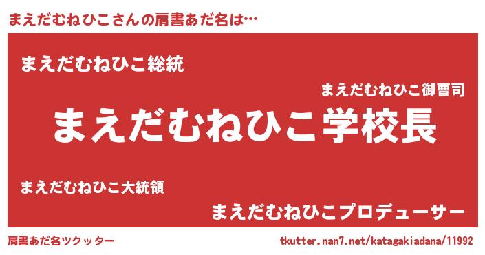 | 女子向けラノベタイトル風あだ名 | 『死神まえだむねひこの再婚』 |