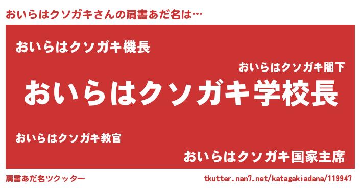 | 男性向けラノベタイトル風あだ名 | 『ノーゲーム・ノーオイラハクソガキ』 |