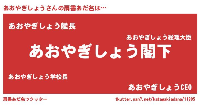 | 意味不明あだ名 | 『自称あおやぎしょう』 |