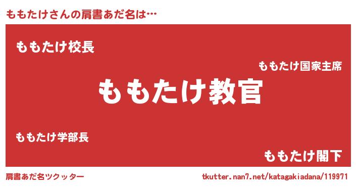 | 男性向けラノベタイトル風あだ名 | 『この素晴らしい世界にももたけを!』 |