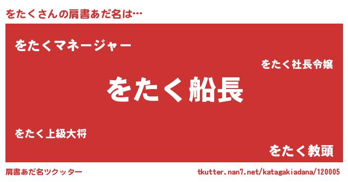 | 欧米人風あだ名 | 『をたく・ステッグマイヤー』 |