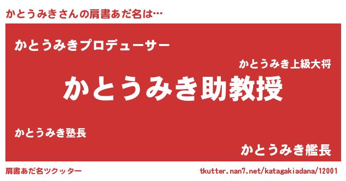 | ヒーロー風カッコイイあだ名 | 『友情の使者かとうみき』『幻影騎士カト』 |