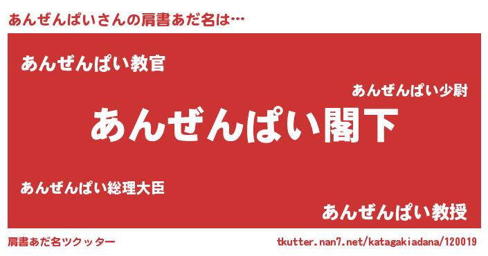 | 欧米人風あだ名 | 『ケンブリッジあんぜんぱい』 |