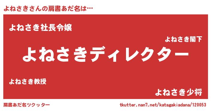 | 男性向けラノベタイトル風あだ名 | 『はたらくよねさきさま!』 |