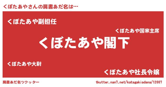 | 女子向けラノベタイトル風あだ名 | 『闇のくぼたあや』『くぼたあやの婚約者』 |